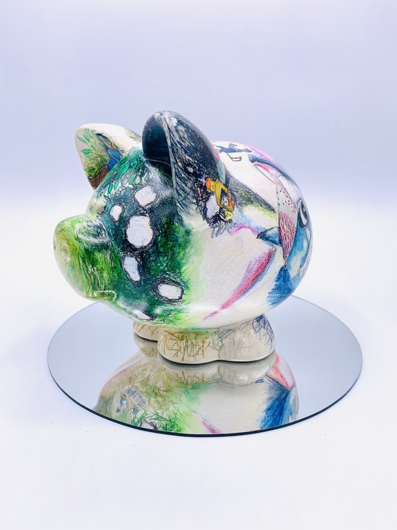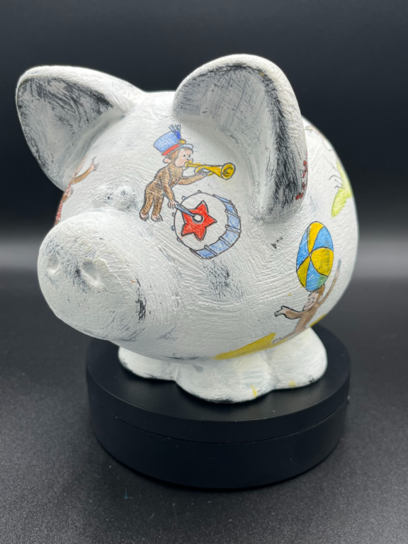 The piggy banks are placed in local businesses throughout the community to collect spare change, directly funding the organization's mission to feed children in need in Floyd County. Once the fundraising period concludes, the money collected is donated to Blessings in a Backpack. Finally, the decorated piggies are auctioned off later in the year at the New Albany Floyd County Education Foundation Gala.