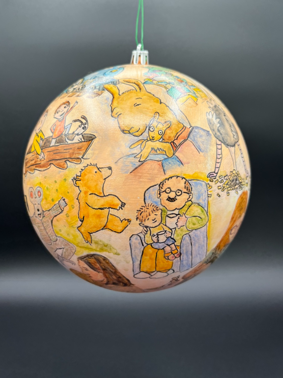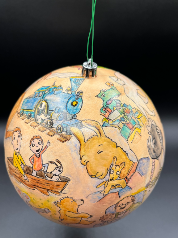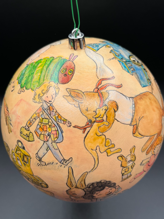 I was asked to create an ornament for the Floyd County Imagination Library. Each Indiana county contributed a hand-painted ornament for the inaugural Imagination Library Christmas tree at the Statehouse in Indianapolis, and I was honored to represent Floyd County.